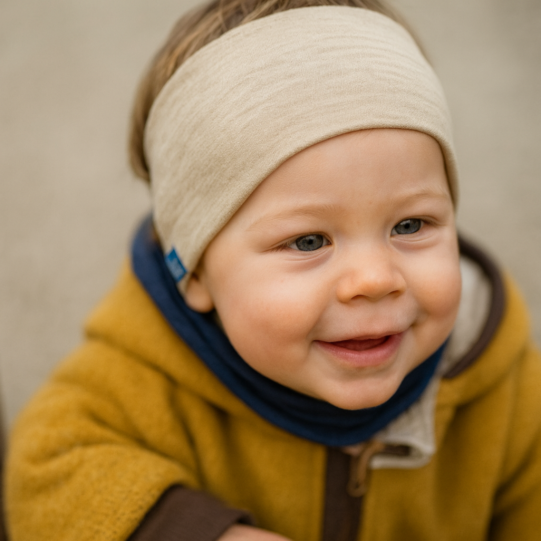 Praktisches Stirnband aus 70% extrafeiner Merinowolle veredelt mit 30% superweicher Maulbeerseide - ein Traum